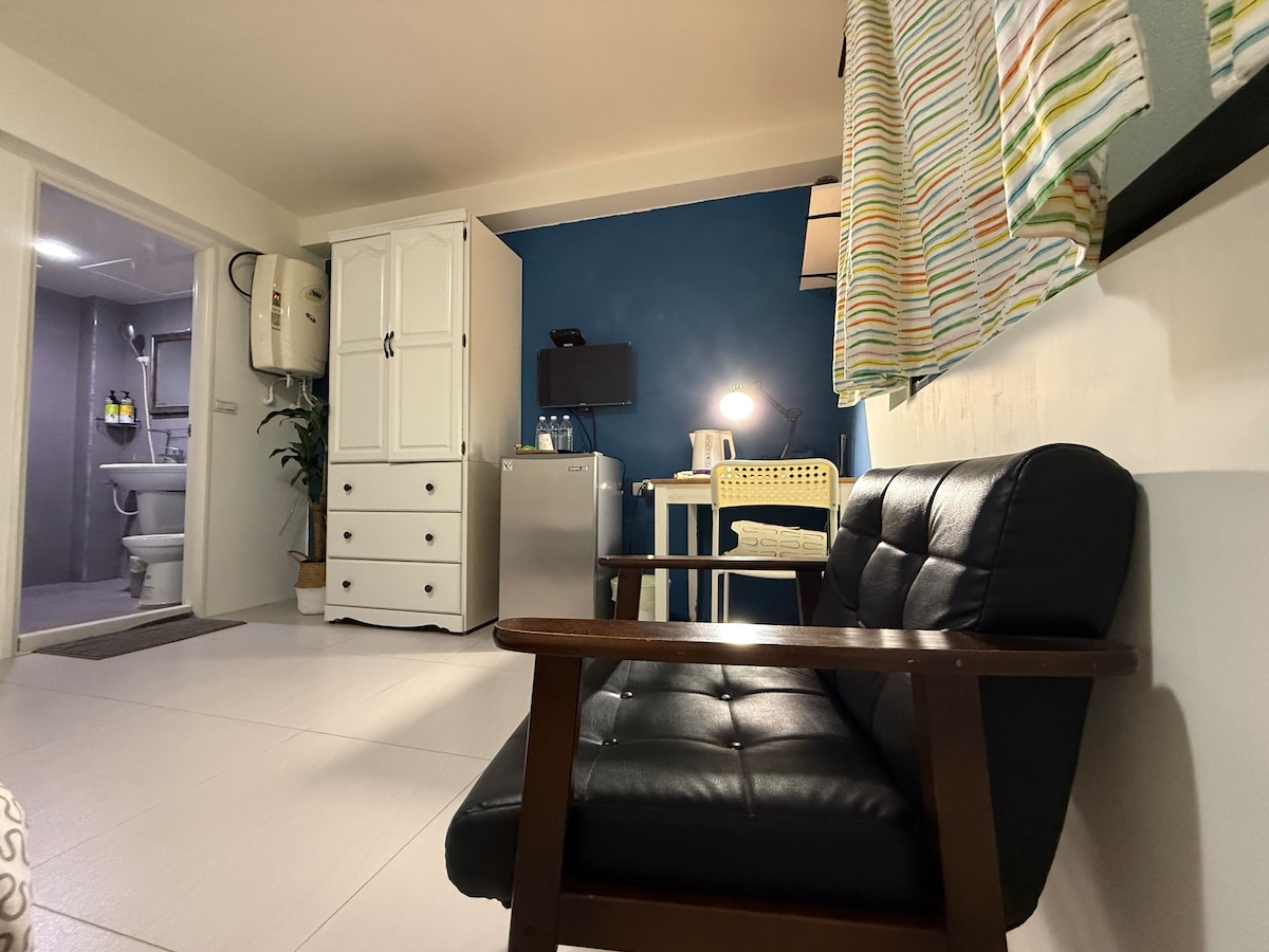 Tai kambarys antrame aukšte su langais. Name nėra virtuvės, bet yra šaldytuvas, virdulys, nes jis yra netoli Centrinio naktinio turgaus, 7-11 patogioje parduotuvėje 24H galite nusipirkti maisto, jei norite skalbti, netoliese yra 2 skalbyklos, taip pat galite džiovinti drabužius; jei nežinote, kaip juo naudotis, praneškite mums, mes lydėsime jus, kad juo naudotumėtės, jei jums reikia paprasto transporto, netoliese yra U-Bike Jukuang parke.Taigi, iki Zhongli miesto geležinkelio stoties važiuoti vos 10 minučių, galite patirti miesto peizažą, maistą, naktinio turgaus užkandžius, humanistinę atmosferą, vietinę atmosferą, o iki autobusų stoties, iš kurios galima pasiekti Zhongli geležinkelio stotį, iš kurios galite nuvykti ten, kur norite, vos 5 minutės pėsčiomis. Netoliese esančios vaizdingos vietovės: Daxi Cihu ežero paveldas, Shimen pėsčiųjų takas, rezervuaras, Xiao Wulai Skywalk Taoyuan šventykla, Gyeongbokgung senelio III klasės paminklas, Bambuko sparnų jūra ir kt. Galime pateikti paprastą turistinę informaciją, nes taksi paslaugos taip pat gali būti informuotos. Ketvirta. Wi-Fi arbatos maišeliai.Kava ir šampūnas, dušo želė, rankšluosčiai, naminės šlepetės, pėdų vonelės kilimėliai (dėl aplinkosaugos priežasčių iš anksto informuokite mus, jei jums reikia dantų pastos ir dantų šepetėlių, jie yra nemokami). Rekomenduojama užsienio svečiams: Oro uoste galite važiuoti Airport Express iki A21 stoties. Galite paklausti oro uosto darbuotojų, kaip juo pasinaudoti. Šalia A21 stoties yra taksi, kuriuo galima atvykti čia. Tai trunka tik apie 10 minučių. Kaina – apie 150–200 NT$. Tai labai patogu. Galite išbandyti ~