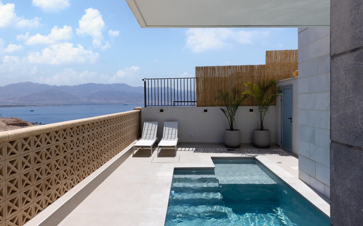 סוויטת "ספיר לקשרי" – דירת גן יוקרתית ושקטה עם חצר פרטית, בריכה מחוממת לפי עונה, בתוך הבריכה פרטיות מלאה, ביציאה מהבריכה ישנה אפשרות לצאת באופן דיסקרטי (לאלה שחשוב צרו קשר למידע מדוייק בנושא) ונוף מרהיב למפרץ אילת והרי אדום. בדירה 2 חדרי שינה אשר בכל חדר מיטה זוגית,אופציה להוסיף מזרן לאורח חמישי, סלון עם טלוויזיה חכמה 70", מטבח מאובזר (כיריים אינדוקציה, תנור, מקרר אינטגרלי, מכונת אספרסו), טלוויזיות חכמות בכל חדר, מקלחת ושירותים. מתאימה לזוג או זוג עם ילדים, לא למסיבות. חניה פרטית חינם.