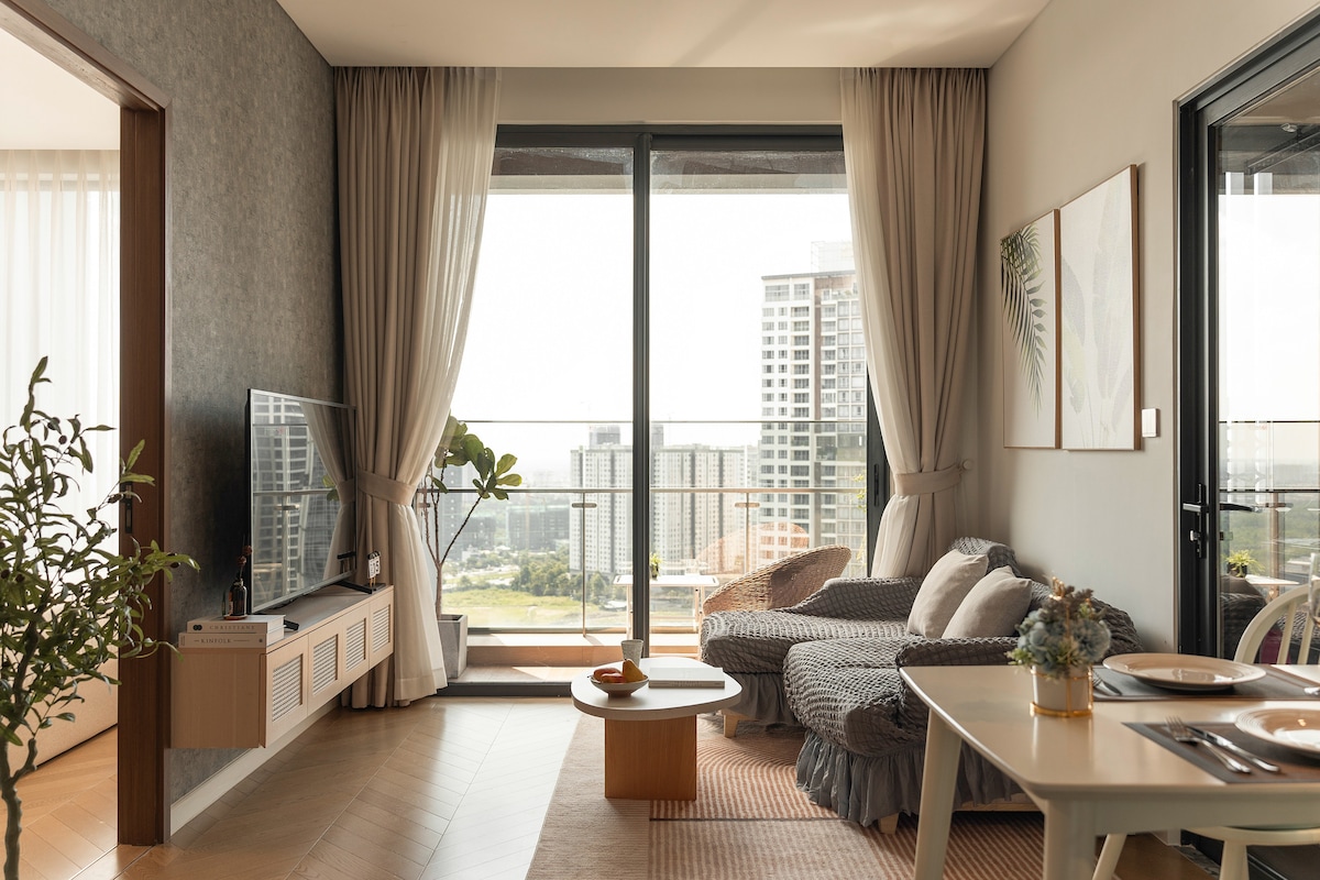 Atraskite ramų japoniško stiliaus butą 7 rajone, vos už 1 km nuo Phu My Hung. Šioje 55m ² erdvėje su vienu miegamuoju dera šiuolaikinis minimalizmas, iš kurio atsiveria vaizdas į upę ir rami atmosfera. Mėgaukitės pilnai įrengta virtuve, išmaniuoju televizoriumi, didelės spartos belaidžiu internetu ir patogia patalyne, įskaitant papildomą lovą. Pastate yra ant stogo esantis begalybės baseinas, sauna, sporto salė ir patogumai, pvz., kavinės, būtiniausių prekių parduotuvės, bankomatai ir vaikų žaidimų zona. Puikiai tinka atsipalaidavimui ir patogiai viešnagei Saigone.