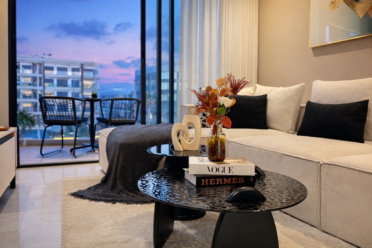 Panoraminė ✨ studija su terasa – Oasis stotis ✨ Mėgaukitės modernia ir šviesia studija, esančia netoli Oasis traukinių stoties. • Miegamasis su 1 dvigule lova • Du stilingi vonios kambariai • Privati terasa su panoraminiais vaizdais • 60 colių televizorius atpalaiduojančioms akimirkoms Idealiai tinka patogiai viešnagei, kurioje dera dizainas, komfortas ir atstumas iki transporto.