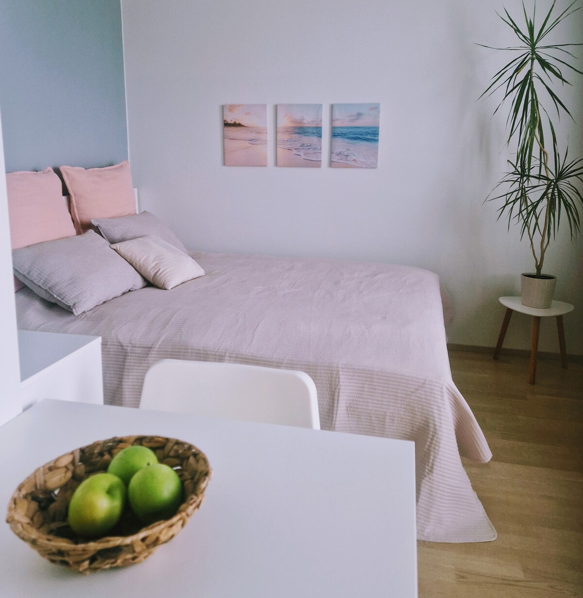 Kalbant apie vietas, tai nėra daug geriau nei tai! Studija yra pačiame miesto centre, vos už kelių žingsnių nuo „Nokia“ arenos, o automobilį galite pastatyti garaže, esančiame tiesiai po pastatu. Šio antrojo aukšto buto interjeras sukurtas taip, kad suteiktų viešbučio kambario atmosferą, o didelė, patogi lova garantuoja gerą nakties miegą. Studijoje yra didelis glazūruotas balkonas, nešiojamasis oro kondicionierius ir pilno dydžio vonios kambarys su skalbimo mašina. Sveiki atvykę 😊