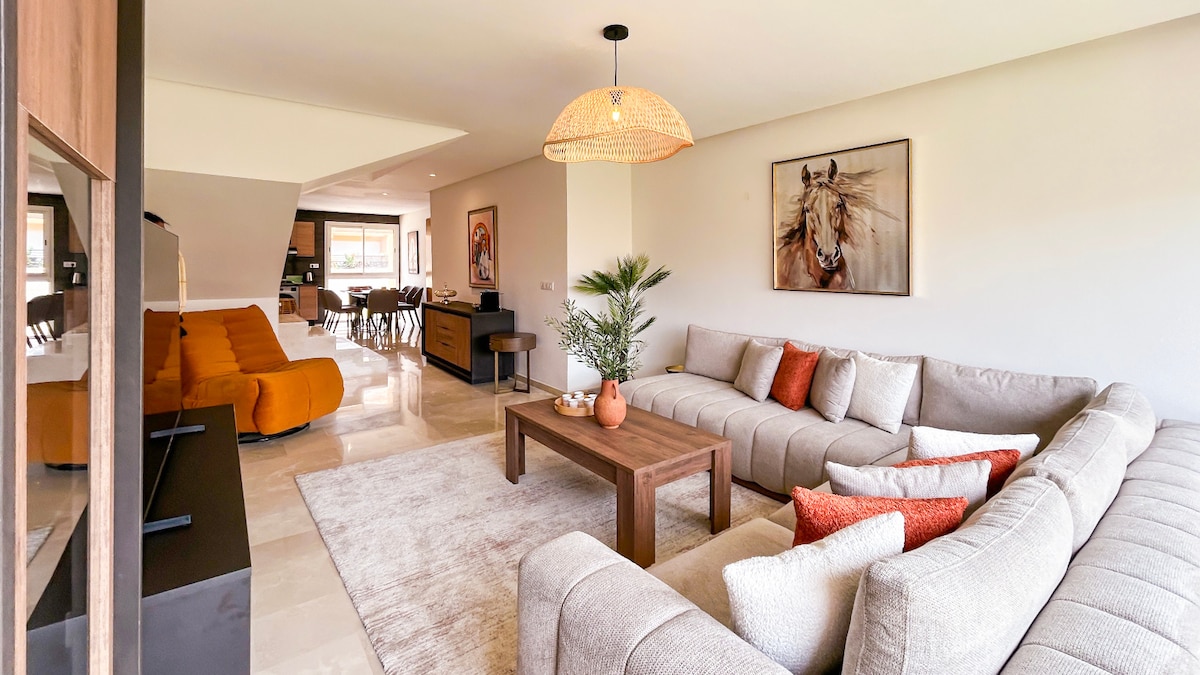 Pabėkite į mūsų modernų 2 miegamųjų, 3 vonios kambarių butą Maroko pakrantėje Tamraght. Ši stilinga poilsio vieta puikiai tinka 5 svečiams, joje yra pilnai įrengta virtuvė, privatus balkonas ir galimybė naudotis dideliu bendru baseinu. Vos už kelių minučių nuo paplūdimio ir banglenčių sporto vietų, tai ideali vieta tyrinėti Taghazout ir Agadir. Mėgaukitės komfortu ir patogumu rezervavę stovėjimo vietą ir atvykę savarankiškai.