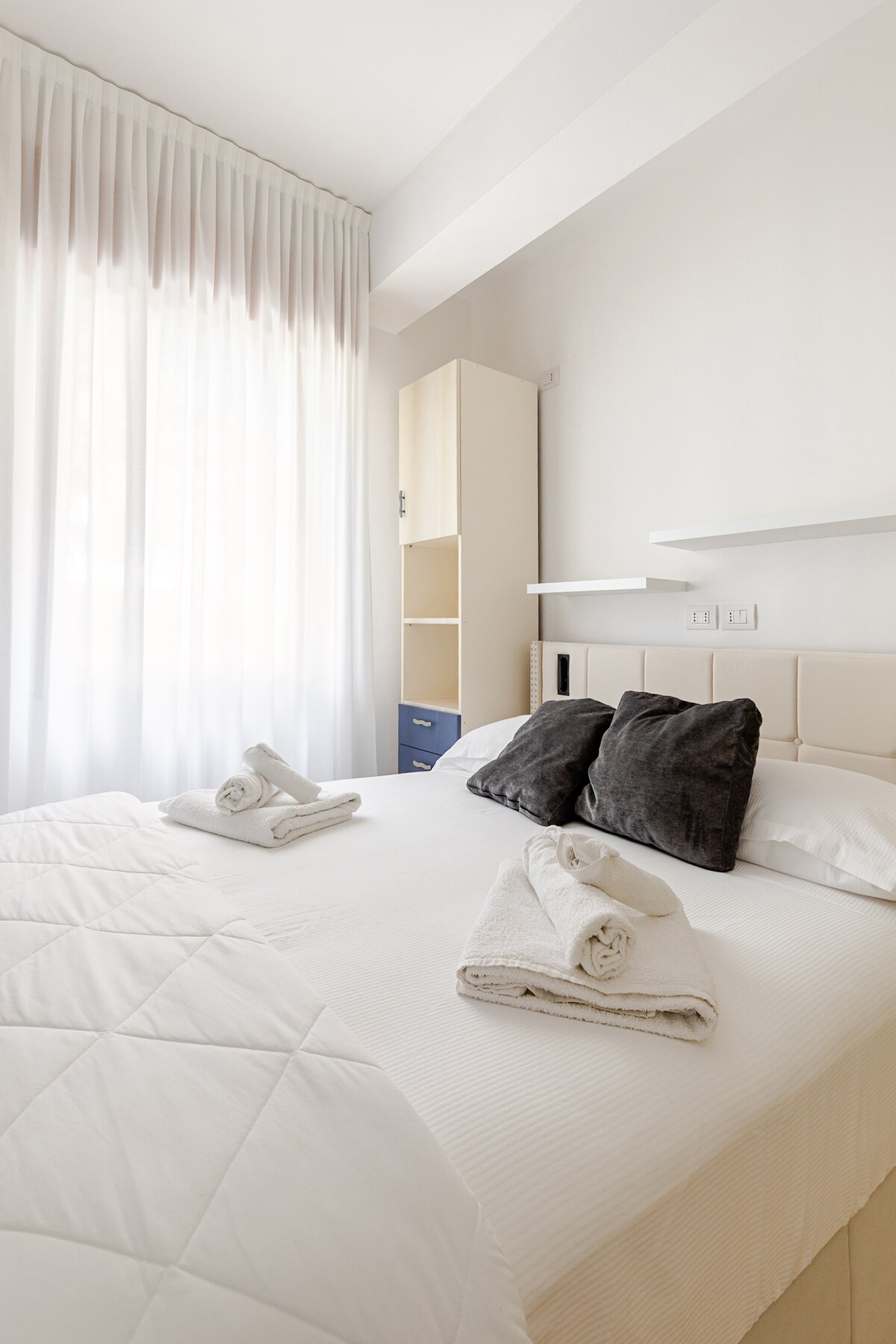 Gražus butas trečiame aukšte su liftu, patogus 4 žmonių šeimoms arba 3 suaugusiems - Paplūdimys už 100 Mt, - Nemokama ir dengta stovėjimo vieta 2 automobiliams. - Priimami maži augintiniai - Greitas Wi-Fi - 1 dvigulė lova - 1 patogi sofa-lova 2 vaikams arba 1 suaugusiajam - 1 gultai - 1 aukšta kėdutė Pilnai įrengta virtuvė - 2 didelės terasos pietums ir atsipalaidavimui - barai, konditerijos parduotuvės, ledainės, piadinerijos, būtiniausių prekių parduotuvės ir žaidimų kambarys už 2 žingsnių