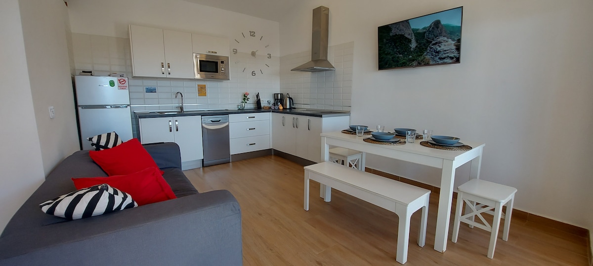 Atsipalaiduokite su įspūdingais vaizdais, papusryčiaukite terasose, deginkitės gultais, jungiančiais su gamta, mėgaukitės paukščių daina ir gyvai romantiškomis naktimis, žvelgdami į žvaigždes! Atnaujintoje studijoje yra patogi lova, virtuvė, privati lauko zona, Wi-Fi ir nemokama automobilių stovėjimo aikštelė vos už kelių žingsnių nuo namo. Mėgaukitės vaisių ūkiu*, išgerkite vaisių ir būkite laimingi! Tylioje kaimo vietovėje jis pasiekiamas automobiliu iš San Sebastiano (20 min.) - pagrindinio miesto, į kurį atvyksta visi keltai.