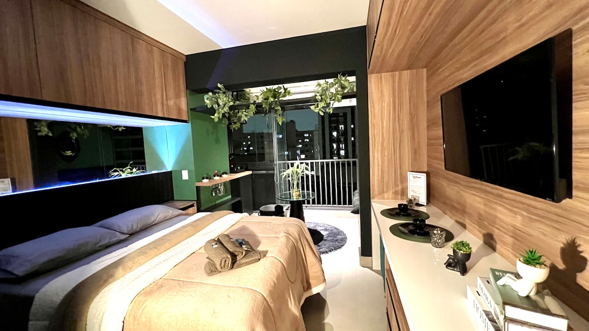 - 22 m² studija; - 350 metrų nuo metro; - Oro kondicionierius; - Wi-Fi; - espreso; - Mikrobangų krosnelė; - Oro gruzdintuvas; - Dvipusis šaldytuvas; - Elektrinė viryklė, puodai ir įrankiai; - Vandens filtras; - Dvigulė lova; - Aukštos kokybės patalynė ir vonia; -Chuveiro karštas su aukštu slėgiu; - Plaukų džiovintuvas; - Balkonas su stalu ir kėdėmis, su vaizdu; - Baseinas ir pirtis ant pastato stogo * Bendras naudojimas * (pirmadieniais nedirba dėl priežiūros) - Oro uostai: Congonhas (11 km), Guarulhos (26 km)