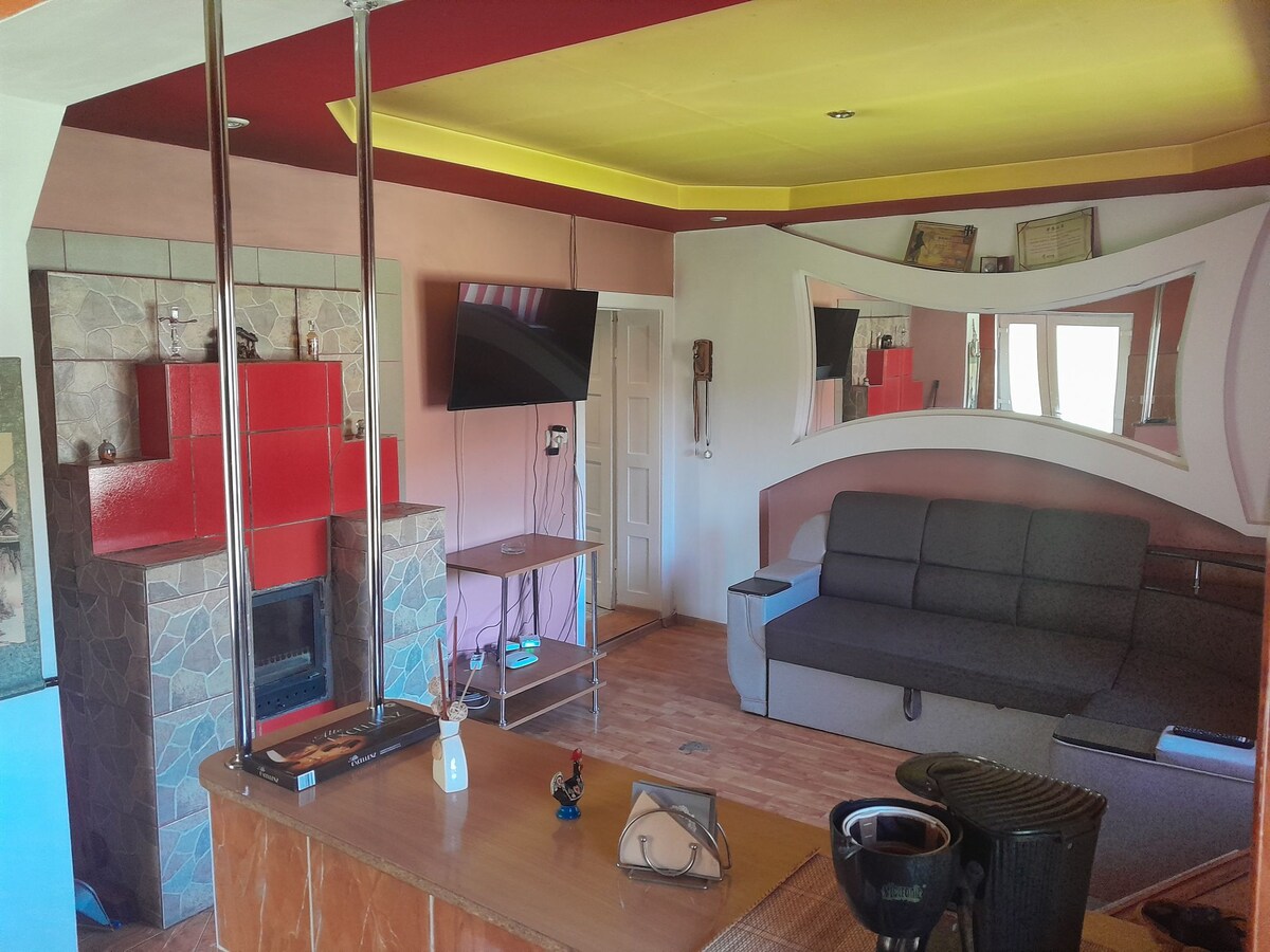 Elegantiška ir jauki OFF-grid trobelė, esanti netoli miško, Apuseni kalnų viduryje, iš kurios atsiveria įspūdingas vaizdas į Vulkano viršūnę. Jei jums patinka gamta ir ramybė, tai tikrai yra vieta, kur galite atsipalaiduoti ir atsijungti nuo absoliučiai visko, kas reiškia triukšmą ir dirbtinę šviesą. Iš naujo atraskite paprastų dalykų džiaugsmą klausydamiesi paukščių čiulbėjimo ir kvėpuodami švariu oru 800 m aukštyje.