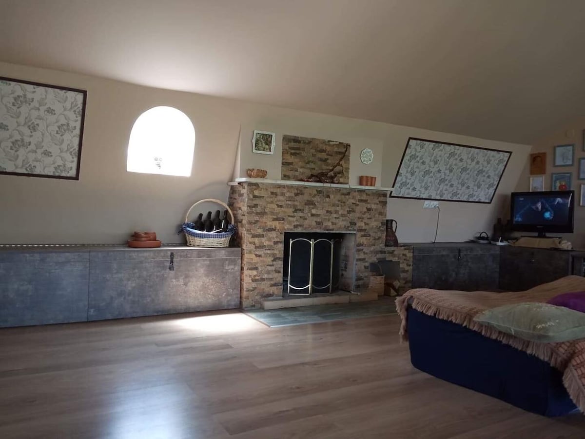 Dviejų parduotuvių jaukus namas. Židinys, veranda su nuostabiu vaizdu į Didįjį Kaukazą. Biblioteka, vynuogynas, kiemas. Idealiai tinka šeimoms su vaikais ir draugų grupėms trumpai atostogų nuomai, mažiems renginiams/konferencijoms, šventėms.