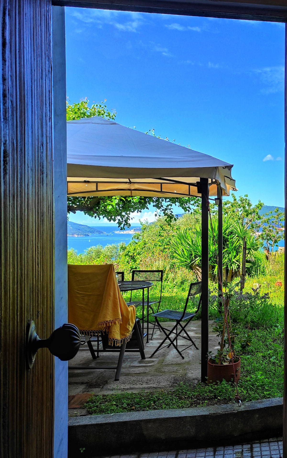 Šis naujai renovuotas kotedžas yra istoriniame privačiame name, panardintame į pasaulietinius alyvmedžius ir akmenines sienas. Visa gyvenamoji erdvė, kurioje yra visiškai įrengta virtuvė, atsiveria terasoje dėl didžiulio terasos lango, iš kurio atsiveria kvapą gniaužiantis vaizdas į Portovenere įlanką. Terasoje yra du atskiri miegamieji su spintelėmis ir prancūziškais langais ir vonios kambarys. Skalbimo zona yra atskiroje gretimoje erdvėje.