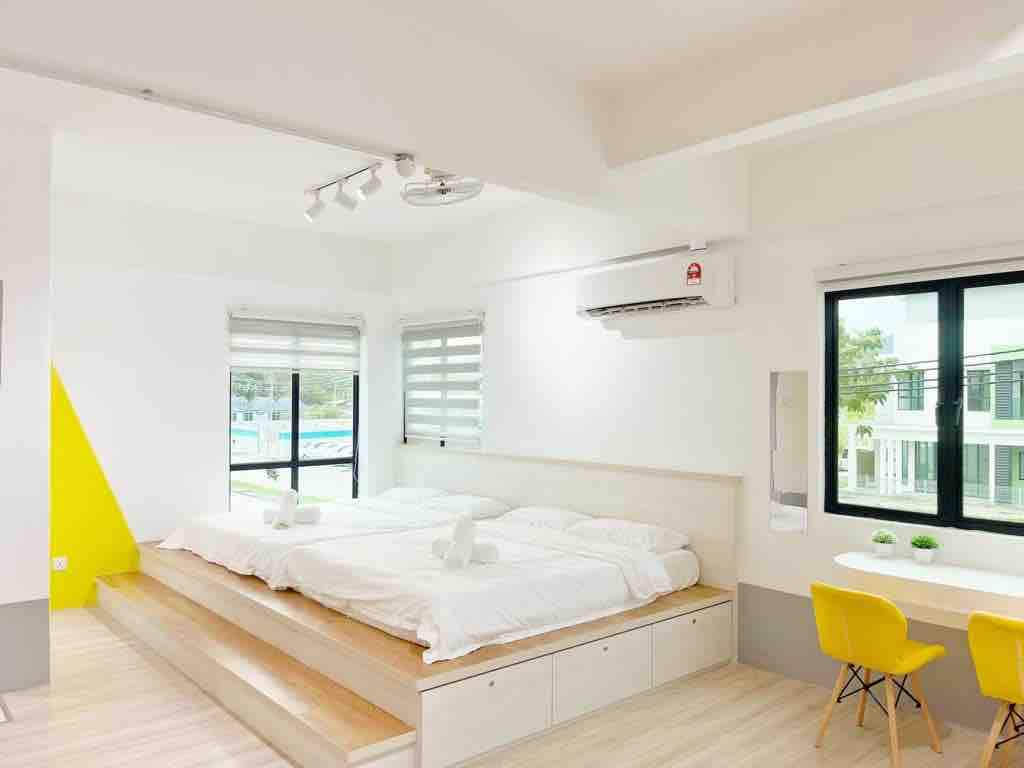 Sveiki atvykę į šią jaukią studiją Pangkor saloje! Šioje erdvioje studijoje, puikiai tinkančioje šeimoms ar grupėms iki 4 svečių, yra 2 dvigulės lovos ir puiki vieta su vaizdu į baseiną. Mėgaukitės greita prieiga prie paplūdimio, vietinių užkandinių ir parduotuvių vos už kelių minučių kelio pėsčiomis. Pagrindinė vieta: - 2 minučių pėsčiomis iki paplūdimio. - 500 metrų nuo jūros gėrybių restoranų, malajiečių maisto prekystalių, prekybos centrų ir neapmuitinamų prekių parduotuvių. - 5 minučių kelio automobiliu nuo keltų terminalo.