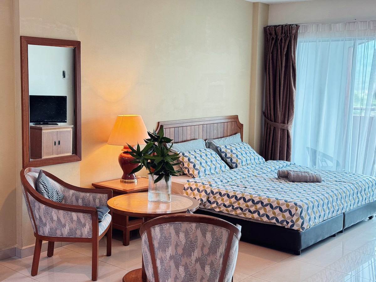 [Studija su vaizdu į baseiną] 2 dvigulės lovos | 2 minutės pėsčiomis iki paplūdimio | Nemokamas belaidis internetas ir automobilių stovėjimo aikštelė