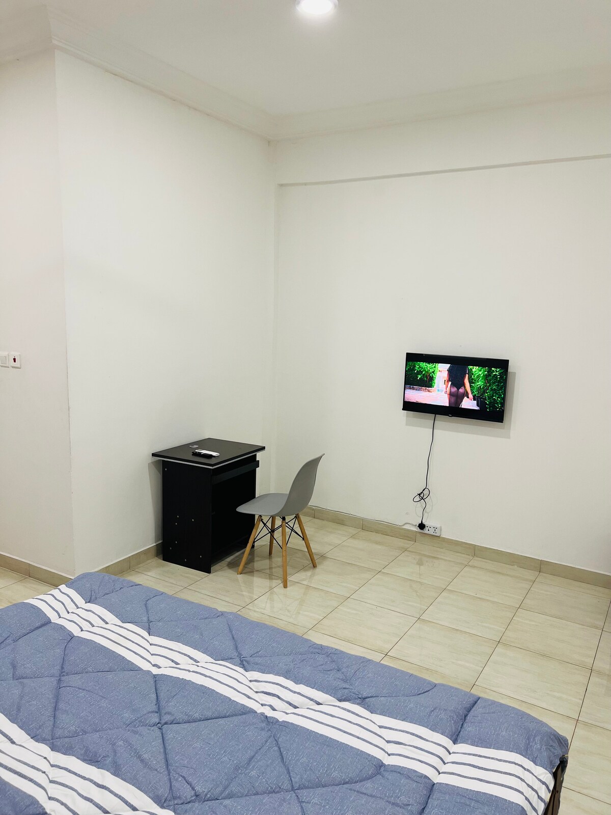 Keep it simple at this recently refurbished,sparkling clean and centrally-located place only 4mins away from Kotoka International Airport (KIA). The studio comes with: - Free & Fast Wifi (> 60Mbps) - Smart TV with Netflix & DSTV - A large comfy bed; fits 2 adults. - Exclusive access to rooftop pool -In-unit washer/Dryer - Free parking - Onsite Gym & Cafeteria - Private balcony with garden view - 24 hours security and CCTV - Personalized fingerprint security access to The Lennox development.