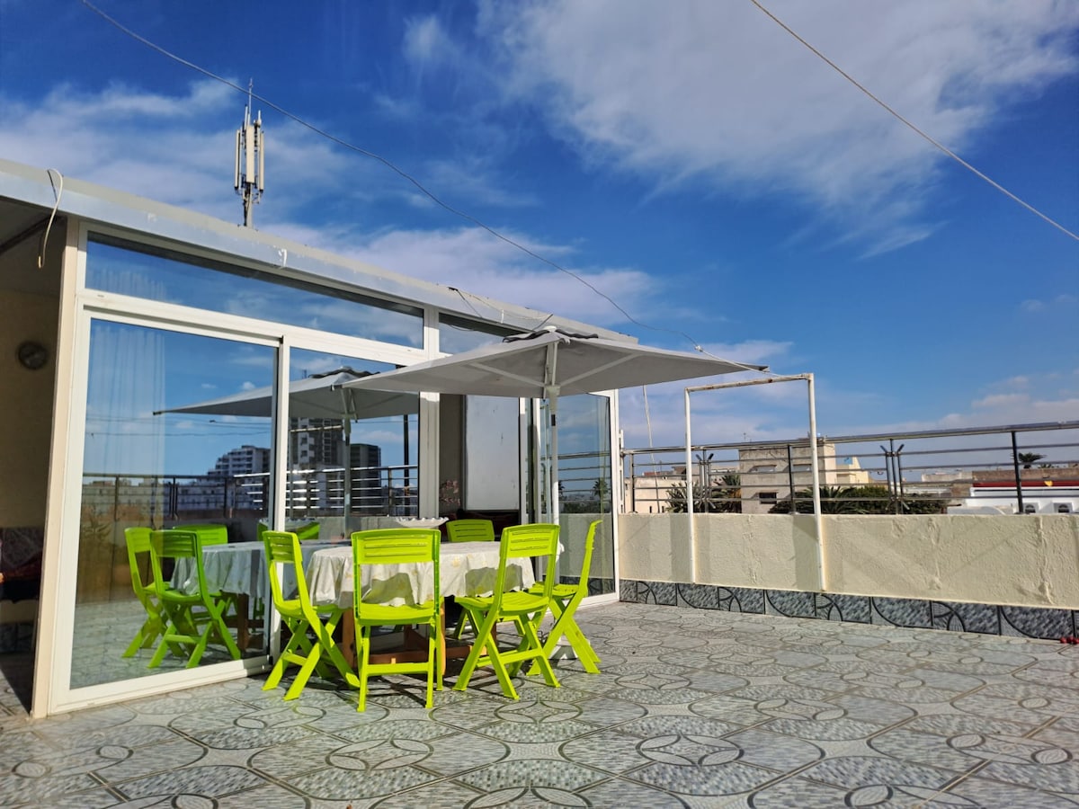 You will appreciate my accommodation for its bright rooms and its outdoor spaces. The apartment is perfect for couples, and business trips, a double room with a large terrace of 12 m² where you could enjoy moments of relaxation around a tea or a drink. The living room is a rest area (Smart-Tv + NETFLIX) and work area (desk + printer). Near the city center and the old Medina, the area is well served by transport and busy with small shops, bars and snacks.