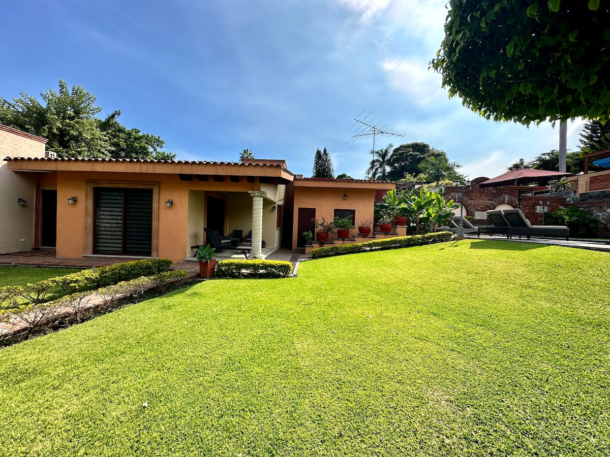 Nuostabus namas vienoje iš geriausių Kuernavakos vietovių. Šiuose namuose ramybė yra kvėpuojanti. Lauke nėra jokio triukšmo, išskyrus gamtos keliamą triukšmą. Jame yra gražus sodas ir didelis baseinas su lovomis. Namas pilnai įrengtas su oro kondicionieriumi, WiFi, TV, netflix ir kt. Tai vieta atsipalaiduoti! Būsto viduje yra kitas namas, tačiau jie yra visiškai nepriklausomi ir gerbiamas kiekvieno privatumas.