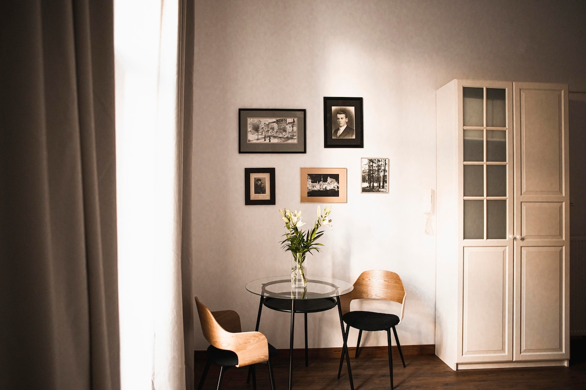 The apartment is set in a beautifully renovated historic townhouse dating back to 1910. Its location is truly special, perfectly positioned between the Old Town and the historic Jewish Quarter, both just a three-minute walk away. You’ll be surrounded by hundreds of cafés, bistros, and bars to explore, while the street itself remains peaceful and quiet. The main train station is just three tram stops away, and the suburban rail station with direct airport connections is within walking distance.