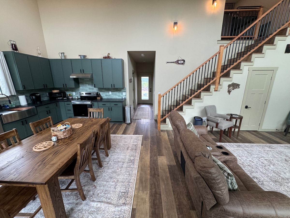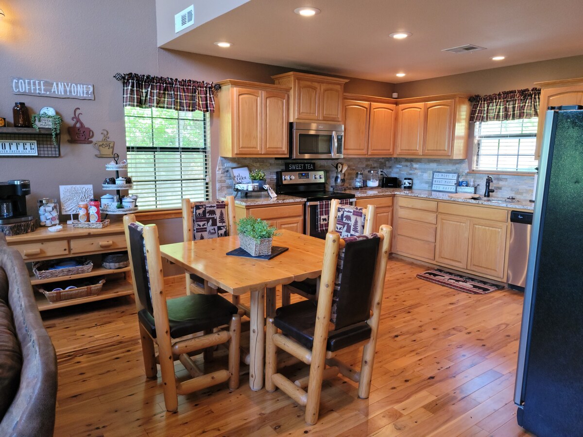 Erdvūs 2000 kv. pėdų namai su vaizdu į Tenkilerio ežerą! Šioje 4 lovų 2 vonioje, esančioje ant 2,5 akrų privatumo ir netoli visko, yra didžiulė virtuvė, valgomasis ir svetainė su tikru malkomis kūrenamu židiniu. Pagrindinėje lovoje yra nauja karališko dydžio lova, užtemdytos užuolaidos, didelis vonios kambarys su kubilu ir dušas. Miegamasis Nr. 2 ir Nr. 3 yra kitame namų gale, kiekviename iš jų yra nauja dvigulė lova. 4 lova yra biuras su pilno dydžio dienos lova su dvigule lova. Šiame kambaryje miega 3 vaikai arba 2 suaugusieji.