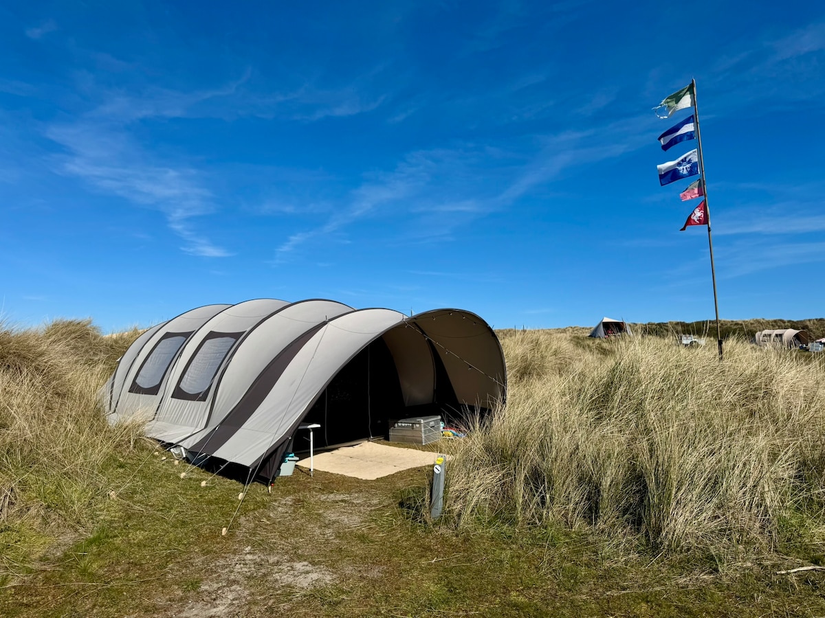 Puiki vieta stovyklavietėje Stortemelk, Vlieland! Stovyklavimas kopose, 2 min. pėsčiomis nuo paplūdimio! Dvi įrengtos palapinės. Pagrindinė palapinė: - Virtuvė - Coolbox - Stalas + kėdės - Dvigulė lova (2x čiužiniai, 80x200) - Saulės šviesa + akumuliatorius mobiliajam telefonui įkrauti. Bičių palapinė - Dvigulė lova (2x čiužiniai, 80x200) Įvairūs - Aukšta kėdutė Atsineškite savo. - Miegmaišiai, paklodės, pagalvių užvalkalai. Po viešnagės išsivalykite.