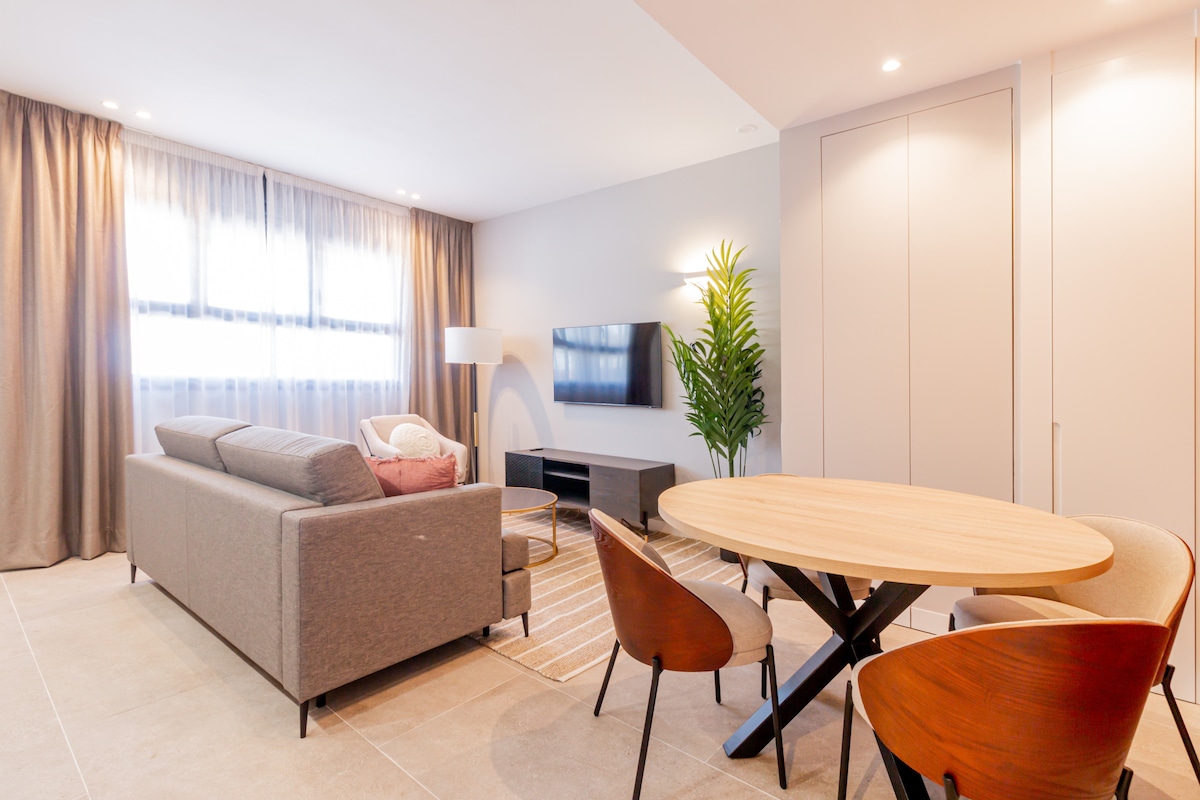 Šviesus ir visiškai renovuotas. Butas yra Chamartín rajone, šalia finansinio rajono ir už 25 minučių kelio pėsčiomis nuo Santiago Bernabeu stadiono. Jį sudaro miegamasis, vonios kambarys-baseo, pilnai įrengta virtuvė, svetainė-valgomasis ir graži lauko terasa. Be to, bute yra šildymas ir vėsinimas per ekologišką aeroterminę sistemą su grindimis. Taip pat yra didelės spartos šviesolaidinis internetas su Wi-Fi.