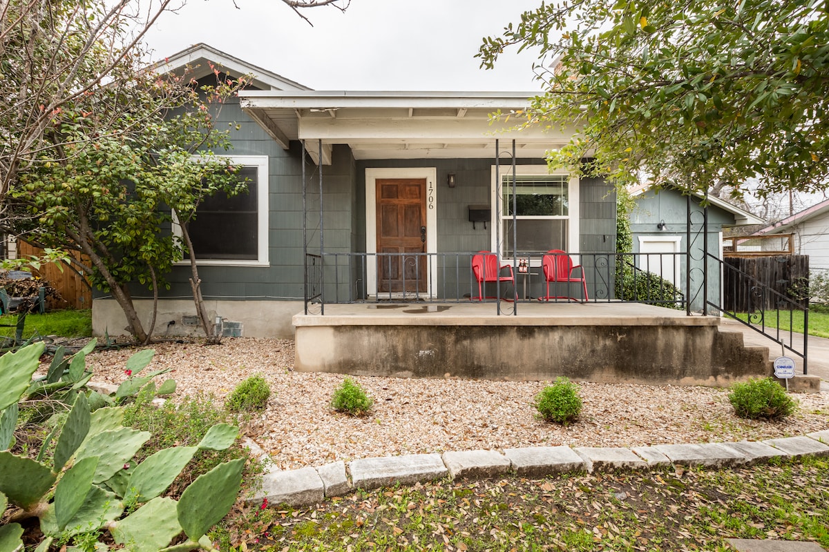 Centrinėje vietoje esantis saulės apšviestas vienaaukštis vasarnamis, lengvai pasiekiamas pėsčiomis East Austin su superšeimininku! Pilnai papildyta gurmaniška virtuve, moderniais nerūdijančiaisiais prietaisais, jaukiomis gyvenamosiomis erdvėmis ir didele lauko terasa/pramogų erdve su dujine kepsnine ir aptvertu kiemu. Atstumas pėsčiomis iki traukinių ir autobusų, puikių barų, restoranų, kavinių ir kt. Vos už 6 min. kelio automobiliu iki miesto centro arba UT miestelio ir už 15 min. kelio nuo AUS oro uosto. Puikiai tinka savaitgalio kelionei, darbo kelionėms, universitetų, SXSW, F-1, ACL ir kt.