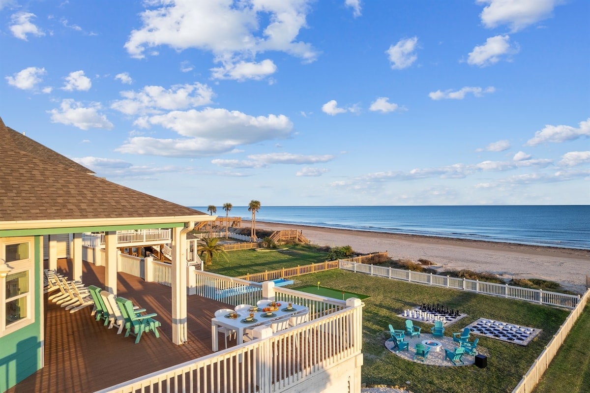 Pabuskite šioje paplūdimio poilsio vietoje su privačiu sūraus vandens baseinu ir tiesioginiu išėjimu į paplūdimį, iš kurio atsiveria panoraminis įlankos vaizdas. Šiuose erdviuose namuose, kurie puikiai tinka grupėms, yra kelios gyvenamosios erdvės, terasos aplink visą namą ir galimybė pramogauti viduje ar lauke naudojantis kepsnine, baru ir valgomuoju su vaizdu į vandenį. Mėgaukitės pagrindiniu aukštu su puikiu kambariu ir virtuve su vaizdu į vandenyną bei atskira klubo stiliaus erdve vaikams arba antrai šeimai. Prabangūs patalynės užvalkalai, spartusis belaidis internetas, išmanieji televizoriai, elektromobilio įkrovimo stotelė ir bagažo keltuvas.