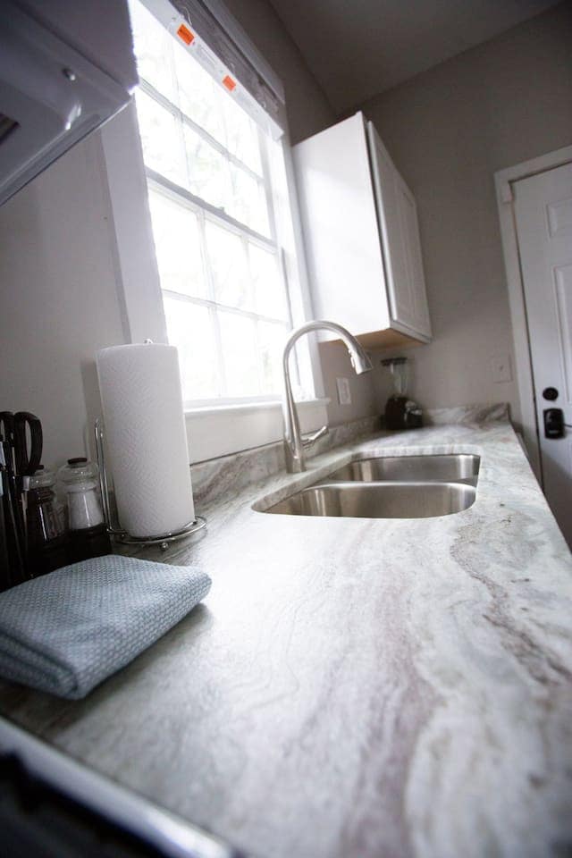 Mūsų architektas sakė: „Tai NE garažas, o sodas!„ Iš mūsų svečių namų atsiveria vaizdas į rožių uždengtą pekaninį medį ir pelkę bei Wappoo Creek vaizdą. Kai atstatėme 1930 m. garažą, išsaugojome visas karoliukų ir pušų grindis. Mano vyrui patiko įtraukti daug dizaino elementų ir kūrybinių idėjų. Jis greitai tapo Tadžo garažu. Nusprendėme, kad tai tik tokia nuosavybė, kuria mėgaujamės keliaudami, todėl, Voila! Nusprendėme ja pasidalyti su jumis!