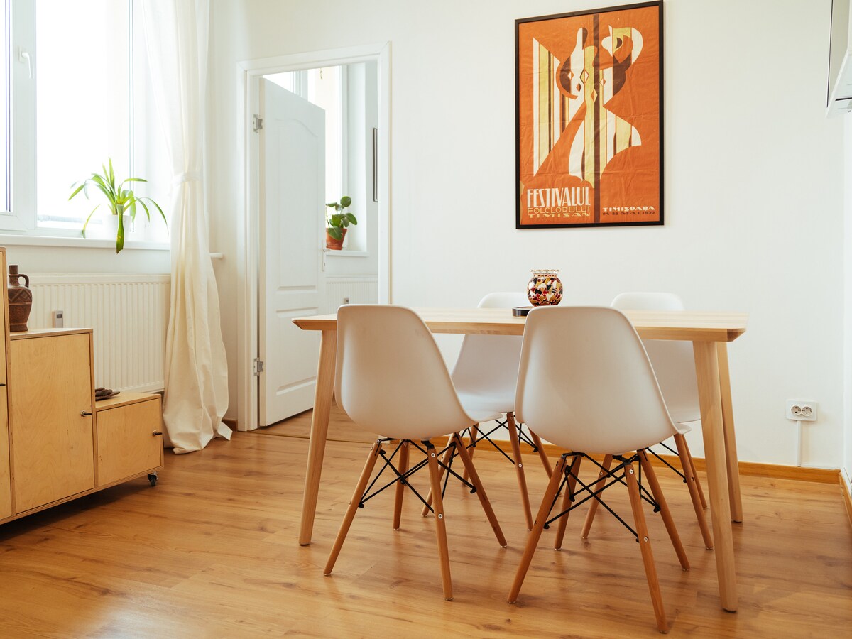 Pradėkite savo nuotykį čia, sostinės širdyje, šalia visų pagrindinių pramogų ir 2 minutės pėsčiomis iki patrauklios senamiesčio erdvės. Šalia jūsų yra Karališkieji rūmai, Rumunų muziejai, prabangios parduotuvės, kazino, parkai, restoranai ir kavinės. Mano butas yra viršutiniame 1960-ųjų pastato aukšte (9-ajame) Bukarešto centre, iš jo atsiveria gražus lauko terasos vaizdas. Jaukiame miegamajame ir atskiroje virtuvėje užtikrinamas maksimalus komfortas ir privatumas.