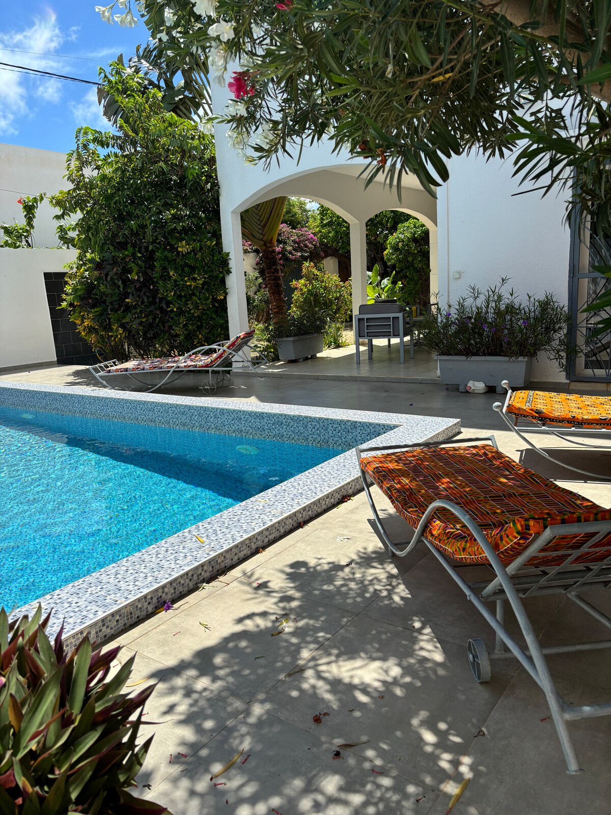Didinga nauja 3 miegamųjų vila su nepriklausoma studija su 3 vonios kambariais, įskaitant pagrindinius apartamentus.💎 Didelis baseinas su gražia panardinta svetaine, taip pat lovomis ir soliariumais. Didelė svetainė su pilnai įrengta JAV virtuve. Vila su oro kondicionieriumi. Saugi gyvenamoji vieta. Rami vieta nepamirštamai išvykai 🇸🇳 📍Lengva pasiekti 30 minučių iki Blaise diagne oro uosto iki Nguerigne, 10 minučių iki Somone paplūdimių ir 15 minučių iki Saly .⭐️