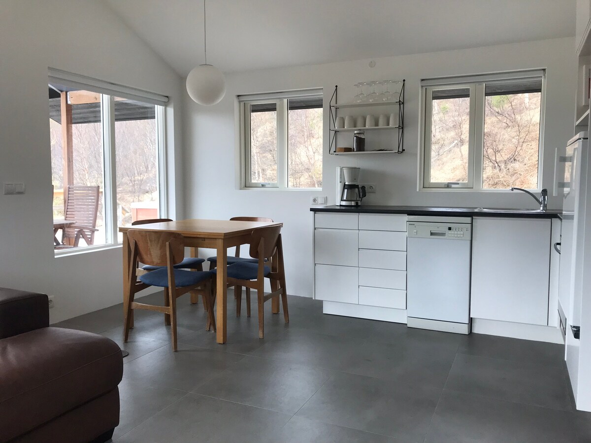 Iš šio modernaus klasikinio kotedžo atsiveria nuostabūs Fnjóskadalur vaizdai. Kotedžas yra 50 m2 ploto, turėsite didelę terasą ir lauką, kad galėtumėte atgauti jėgas. Atsipalaiduokite sūkurinėje vonioje su geoterminiu vandeniu ir mėgaukitės gamta, jausdami šalia kotedžo tekančios Fnjóska upės galią. Netoliese yra puikūs pėsčiųjų takai. Netoliese taip pat yra kriokliai, aktyvus ugnikalnis ir žvejybos vietos. Dienos kelionė į Jökulsárgljúfur nacionalinį parką, Dettifoss krioklį ir Mývatn.