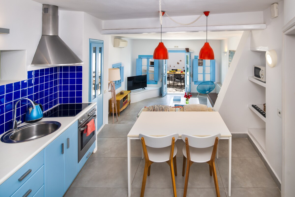 Senojo stiliaus ir neseniai visiškai atnaujintas tradicinis urvas, gerai paslėptas ramiame kanjone Emporio Santorini kaime. Patirkite gyvenimą urve, vedantį į žemės ūkio gyvenimą, girdite gamtos garsus, esate 10 min. atstumu nuo paplūdimio!