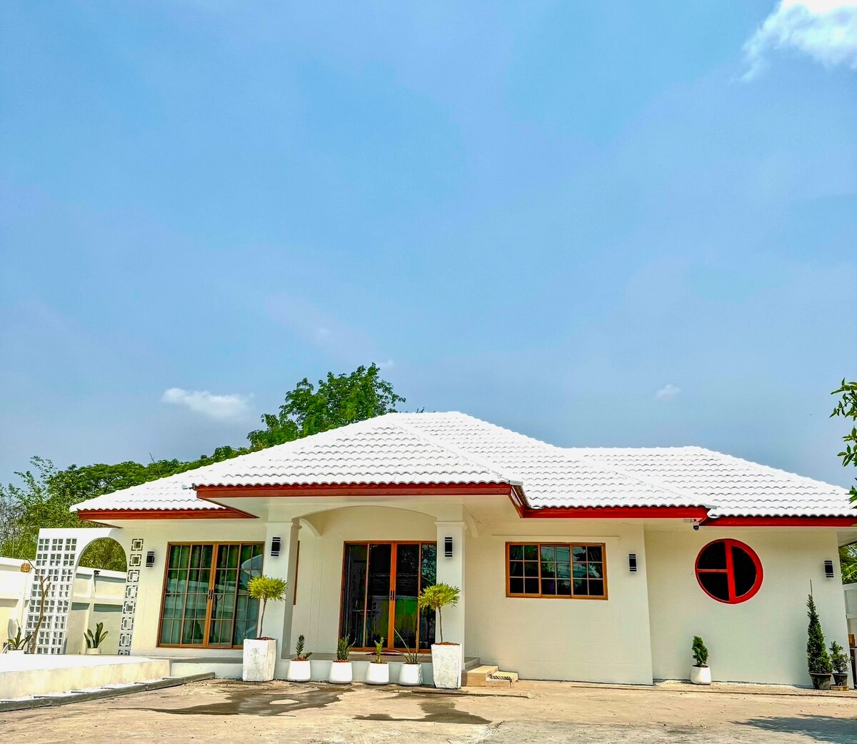 Tradicinio Isan stiliaus atskiras namas su virtuve (kriaukle, šaldytuvu), lauko virykle ir virtuvės reikmenimis. Galime kartu pasigaminti laužavietę. Turite savo, bet atskirai nuo namų dušo ir tualeto. Didelė šviesi gyvenamoji erdvė su vaizdu į ryžių lauką. Miegamasis su oro kondicionieriumi vienam ar dviem asmenims. Terasa kavai. Fotogeniškas, tylus, puikiai tinka nuotoliniam darbui. Gausite privačią automobilio stovėjimo vietą. Ir ventiliatorius, skalbyklė/džiovyklė pagal pageidavimą. 2 km nuo Ban Chiang muziejaus, 10 minučių iki Lotus šventyklos, 3 minutės iki 7-11.