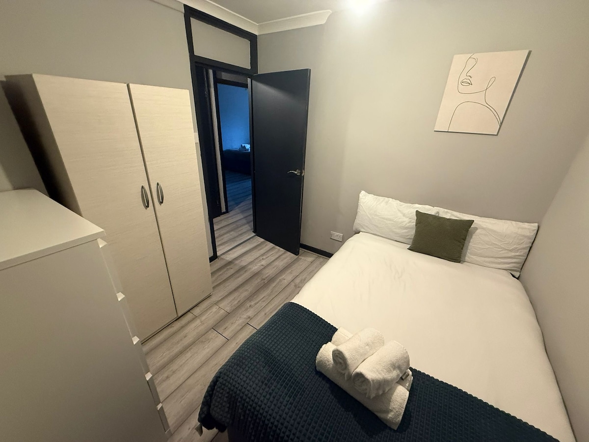 Feel right at home, kick back and relax in this calm, peaceful and stylish space. The spacious two-bedroom apartment is light, bright and full of natural light with cleaning kept to a high standard. Your spacious bedroom comes with a king-sized bed and a private bathroom. Shared living room and kitchen with full use of all the kitchen appliances including the washing machine. Free off-road parking is available.