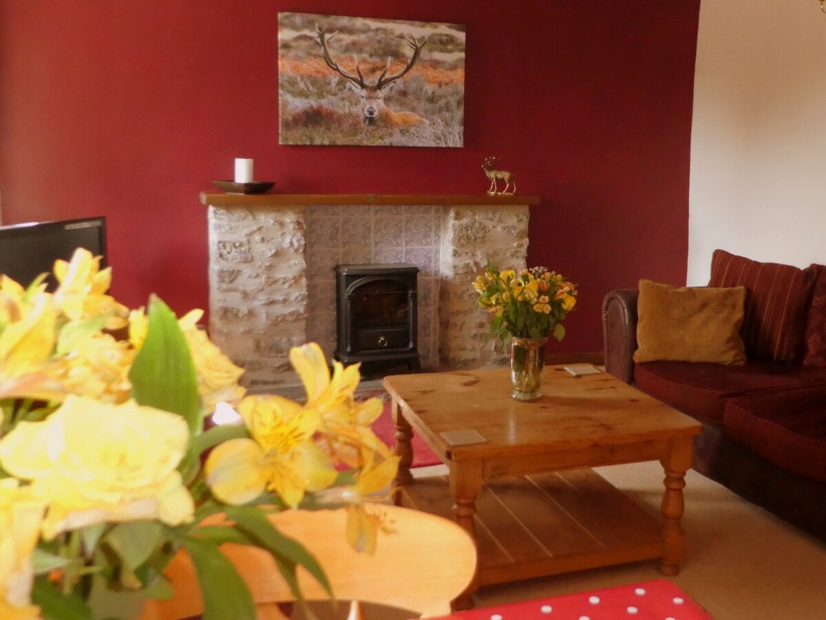 Jaukus namelis klestinčiame kaime. Gana mūrinis sodas su sodo baldais. Puikiai įrengtas, kokybiška lina, rankšluosčiai. Vonios kambarys su atskira vonia ir puikiu elektriniu dušu. Viename miegamajame yra dvigulė lova, o dviejuose miegamuosiuose yra dvi viengulės lovos, kurias galima užsegti užtrauktuku, kad jos būtų karališko dydžio. Puikus Wi-Fi signalas. Yra šeimai tinkama lovelė ir aukšta kėdutė. Atsiprašome, jokių augintinių. Dvi minutės pėsčiomis į kaimą, esantį toliau nuo pagrindinio kelio kalvos šlaite. Savarankiškas atvykimas naudojant raktų dėžutę.