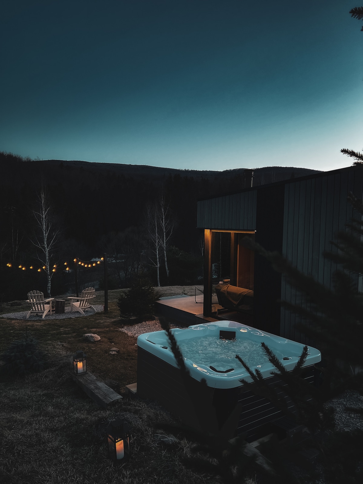 Whether you’re searching for a romantic escape, a small family trip, or planning to work remotely from this idyllic retreat, our cabin is designed to offer comfort, warmth, and convenience. At Nuka Chalet, you wake up in a nature painting , enjoy your coffee on the private deck and spend your days exploring the hiking trails (walk, run, bike) or by the lake. Evenings are cozy inside by the fireplace or outside by the fire pit under a sky full of stars.