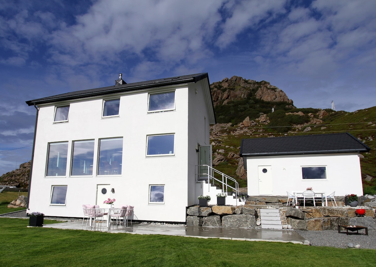 A genuine and cozy house from 1900 with an amazing atmosphere and view. The Blue House is an optimal base for hiking, skiing, kayaking, snowshoe trekking and mountaineering. Fishing in the lakes or in the sea is right outside the door. Maps, first aid kit are available free of charge. The house is just renovated, and painted in colors chosen by the “blue city” artist, Bjørn Elvenes. Charger for electric cars is available for an extra fee.