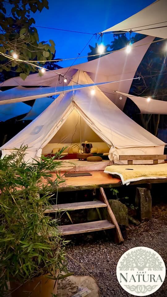 Pabėkite į mūsų stovyklavietę, kur nuotykiai susitinka su komfortu – vos už dviejų valandų kelio nuo metro! Patogumai: - Jaudinanti 30 minučių kelionė keturračiu - Naujai atnaujinta sūkurinė vonia su masažo purkštukais - Palapinė su oro kondicionieriumi ir 2 dvigulėmis lovomis su „Memory“ putplasčiu – Lauko kinas su „Netflix“ - Veikla: paukščių stebėjimas, žvaigždžių stebėjimas, karaokė, kortų žaidimai - Nuosavas tualetas ir vonia - Su stovyklavimo indais ir įrankiais - Teleskopas - Nemokamas kepsninės naudojimas. - Laužo įrengimas su s'mores (pasirinktinai)