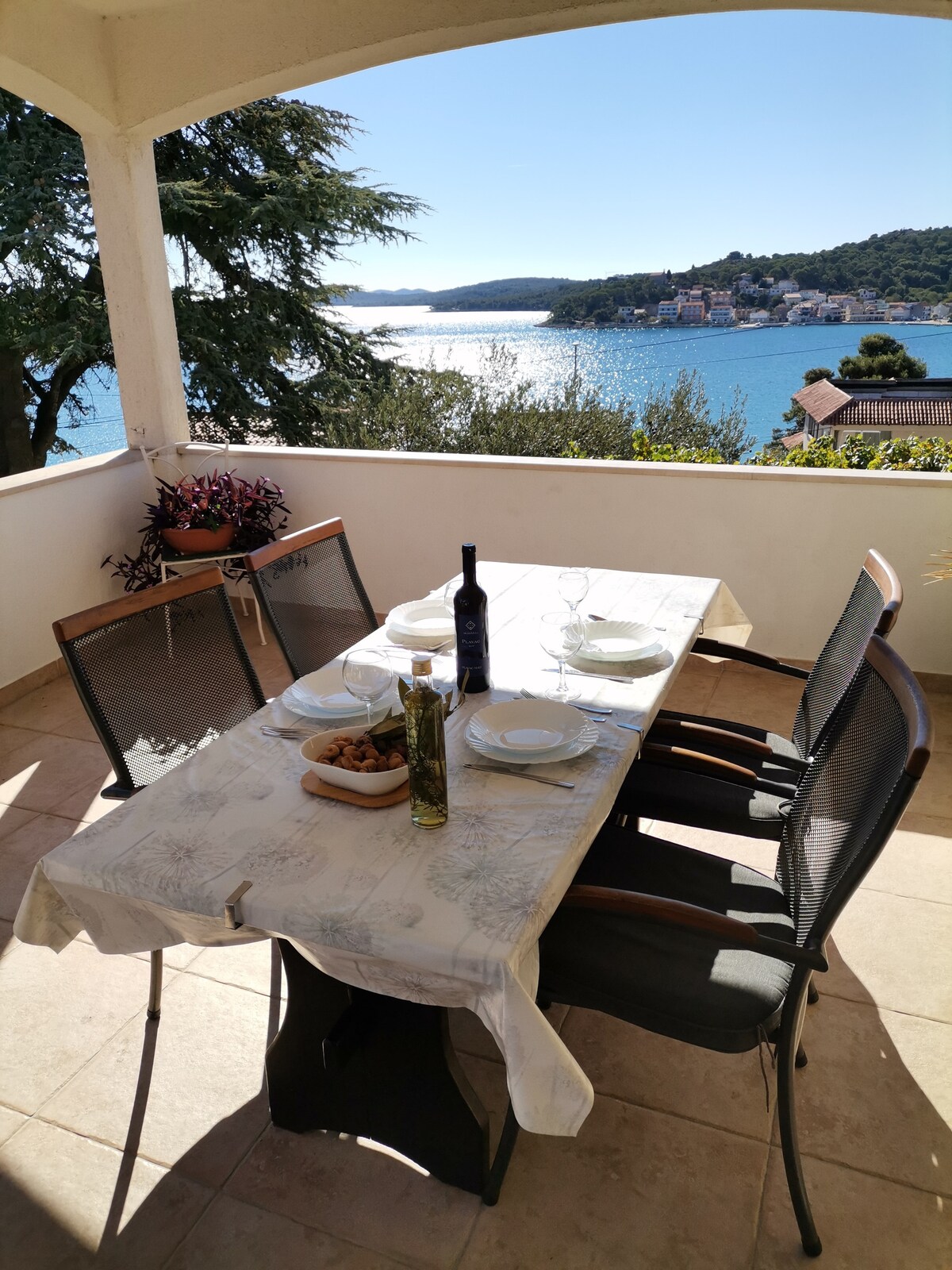 Pas šį mažą Viduržemio jūros miestelį jausitės kaip namuose, nesvarbu, ar norite atsipalaiduoti, ar aktyviai atostogauti. Siūlome Jums dviejų miegamųjų butą su oro kondicionieriumi ir WiFi, nemokamą automobilių stovėjimo aikštelę priešais butą ir Tisno savivaldybės automobilių stovėjimo aikštelės bilietą. Kiekvienas miegamasis turi savo vonios kambarį ir balkoną. Gražūs paplūdimiai yra pėsčiųjų atstumu, kaip ir vienas iš geriausių restoranų Tisno. Mes esame draugiški dviračiams ir nekantraujame su jumis susitikti!