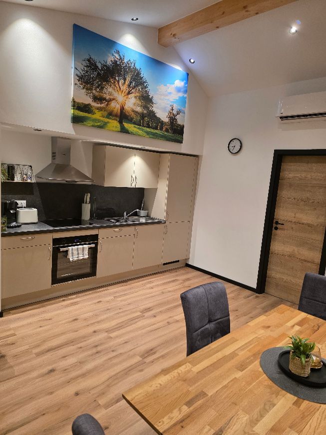 Išskirtinis butas 8 asmenims su balkonu (1 aukštas) Mėgaukitės prabanga ir komfortu mūsų naujame bute (pastatytame 2024 m.) nuošalioje vietoje, adresu 84405 Dorfen, vos už 25 minučių kelio nuo Miuncheno/Messe München. Šiuolaikiniame būste yra 115 m2 iki 9 svečių su 3 miegamaisiais, 1 vonios kambariu, svečių vonios kambariu, didele svetaine ir valgomąja zona bei pilnai įrengta virtuve. Yra greitas belaidis internetas, 75 colių išmanusis televizorius, automobilių stovėjimo aikštelė balkone ir įkrovimo įranga elektromobiliams. Nekantraujame tai pamatyti!