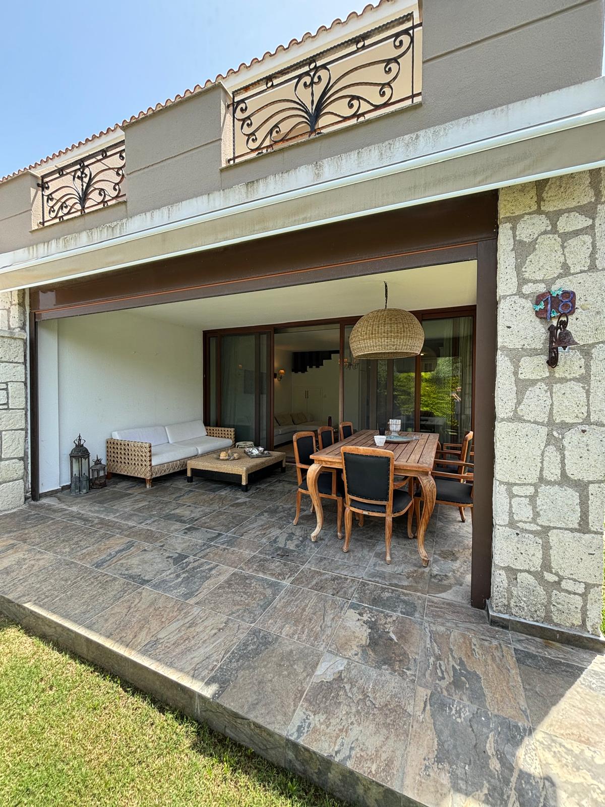 800 metrų sode yra 150 m2 naudojimo plotas. Yra 4mx8m baseinas, kuris prižiūrimas ištisus metus. Yra šviesolaidinis interneto ryšys Mūsų namuose yra 3 kambariai, 2 vonios kambariai, 3 tualetai, 2 židiniai sode ir viduje, rami vila su citrinmedžiais, alyvmedžiais ir braškėmis. Kambariuose yra elektriniai šildytuvai, oro kondicionieriai ir lubiniai ventiliatoriai. Alacati centras yra už 3 minučių kelio automobiliu arba 10 minučių pėsčiomis. Rezervuaras ir hidroforo sistema, kad nebūtų paveikta vandens tiekimo pertrūkių.