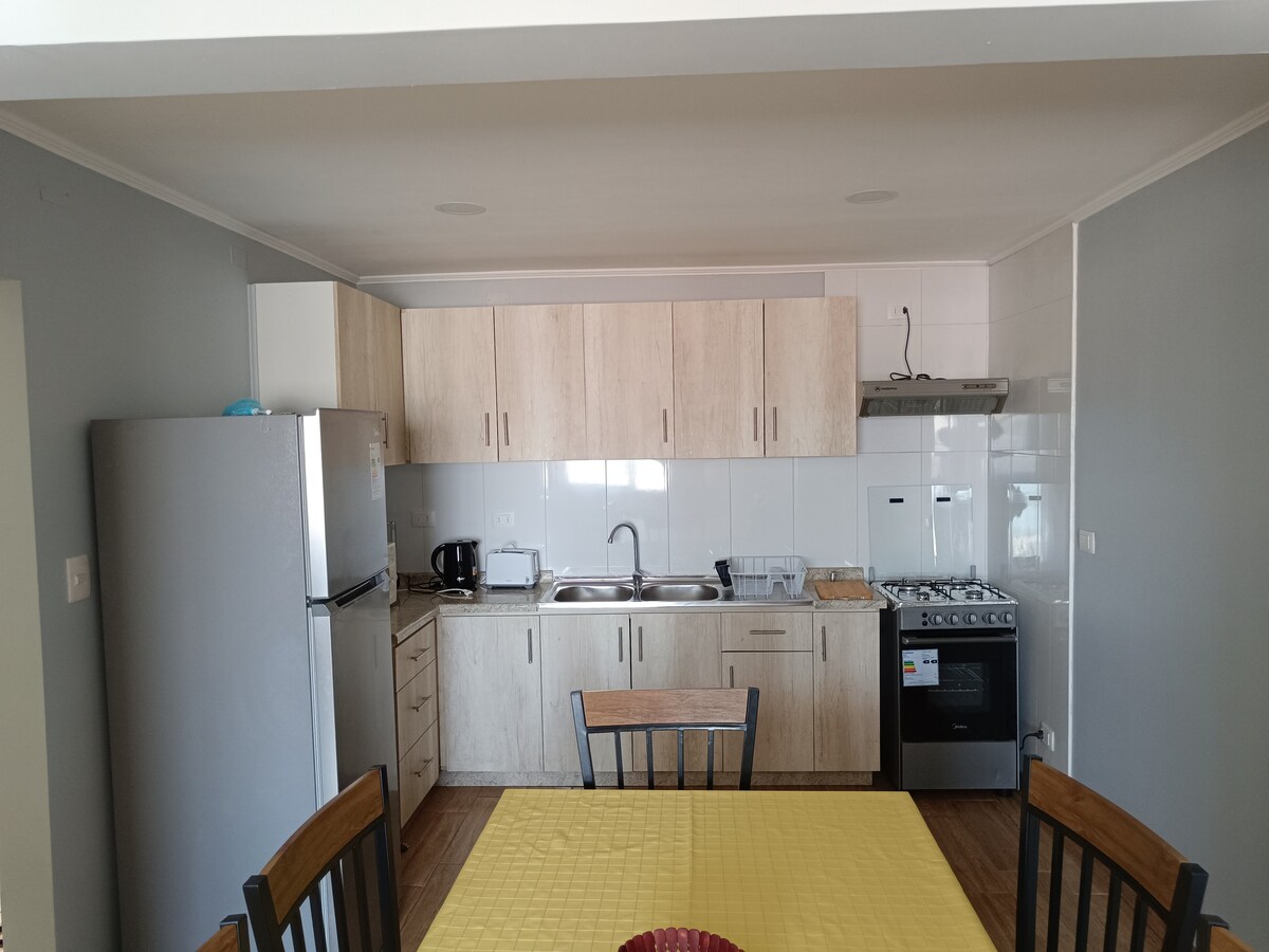 Pabėkite į Coquimbo! Jaukus butas 5 žmonėms priešais paplūdimį, su 2 miegamaisiais (dvigule lova, trobele ir sofa-lova), pilnai įrengta virtuve, Wi-Fi, skalbykle/džiovykle, visą parą veikiančiu stebėjimu, privačia automobilių stovėjimo aikštele ir liftu (13 aukštas). Vos už 2 kvartalų nuo prekybos centro „Mall Vivo“, centro, prekybos centrų, autobusų terminalo, įlankos, šalia vietinės mugės ir veiklos, pvz., pasivažinėjimų piratų laivais. Puikiai tinka ilsėtis, mėgautis jūra ir tyrinėti vietovę. Užsisakykite viešnagę ir mėgaukitės potyriu!