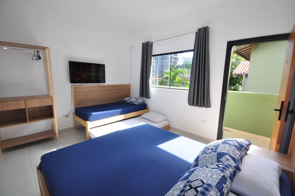 Mūsų 30 m² studija idealiai tinka porai su dviem mažais vaikais arba trimis suaugusiaisiais. Tai nedidelė prabanga su vaizdu į jūrą. Įsikūręs uždarame, saugiame kondominiume, kuriame yra automobilių stovėjimo aikštelė ir privatus priėjimas prie Toninhas paplūdimio. Į paplūdimį patenkama laiptais (72 laipteliais) arba rampa.