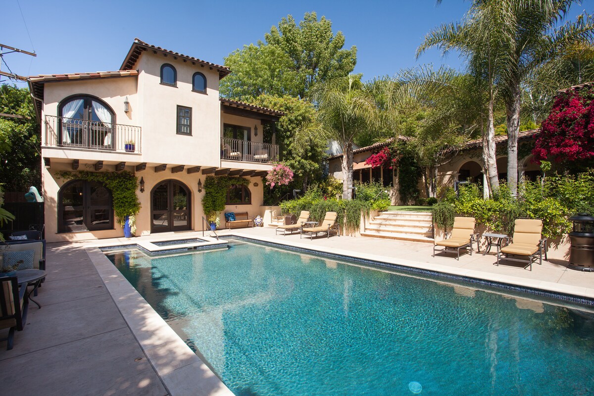 Susisiekite su manimi ir nurodykite galimas datas, nes ruošiamės pratęsti dalijimosi leidimą su Los Andželo miestu. Tai visada patvirtinama, bet užima DAUG LAIKO. Jei jūsų pageidaujamos datos yra nemokamos, aš jas užblokuosiu. Atsipalaiduokite prabangiai savo gražioje 2 lovų/2 vonios svečių gyvenamojoje vietoje, kurioje miegama 6 kartus ir kuri yra patogioje vietoje netoli visų Los Andželo lankytinų vietų! Viešnagės metu baseinas ir šildomas SPA priklauso tik jums! Stengiamės, kad jūsų apsilankymas Los Andžele būtų ypatingas.