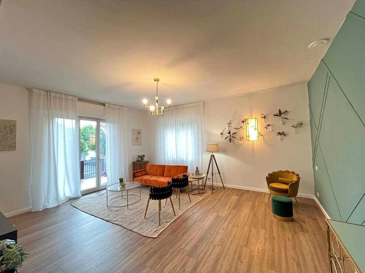 IŠSKIRTINIS butas Ponte San Giovanni, vos už 5 km nuo Perudžos centro. Ramioje ir elegantiškoje vietovėje,netoli E45 greitkelio sankryžos, už 15 minučių kelio nuo Asyžiaus ir už 10 minučių kelio nuo oro uosto. Jame yra puiki apdaila, parketo grindys, svetainė su virtuvėle, išmaniosios televizijos (Netflix) kavos aparatas, vonios kambarys su erdviu dušu ir priedais. Dvivietis kambarys, WI-FI, išmanioji televizija, didelė terasa su skalbimo mašina ir lauko stalu. Oro kondicionierius, garažas ir privati automobilių stovėjimo aikštelė.