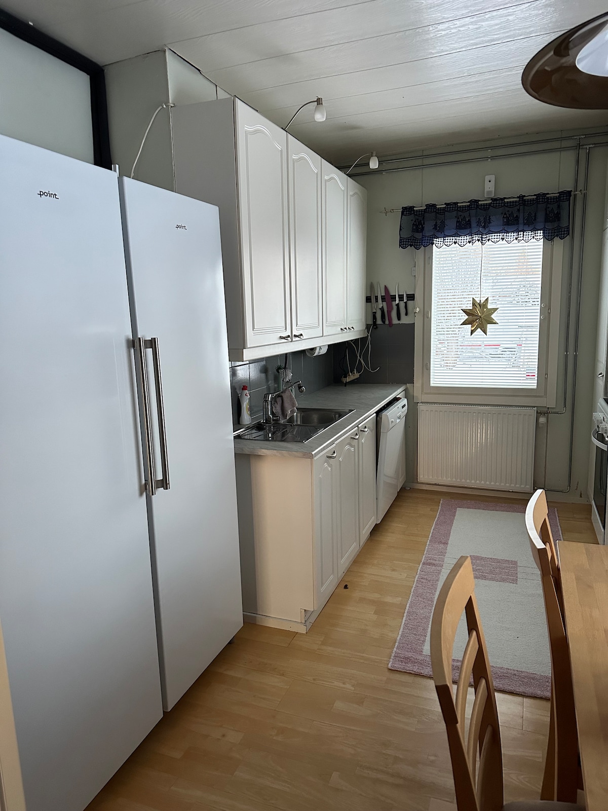 Svarbi pastaba! Atvykimas taip pat po 20.00 val., neribojamas. Visą būstą galite naudoti tik tuo atveju, jei esate vienas arba visa grupė. Jaukus trijų miegamųjų butas miesto svečiams. Bute yra laiptai. Namuose yra viskas, ko reikia patogiai viešnagei. Privatūs kambariai, indai, patalynė, Wi-Fi, televizorius, skalbimo mašina, džiovyklė, šaldytuvas/šaldiklis ir kt.) Atskiros lovos. Netoli Haparanta/Tornio sienos, golfo aikštynas, Ikea, Sampo ledlaužis, Sniego pilis .
