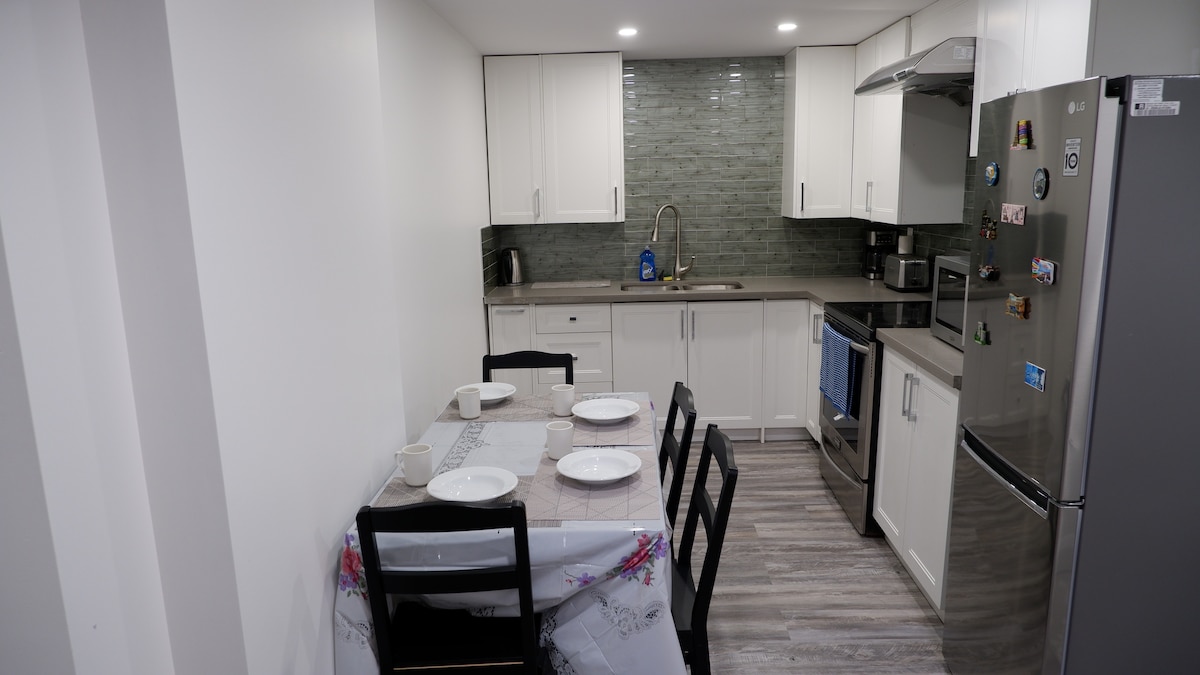 Stilingi 2BR apartamentai rūsyje Willowdale centre! Šiuolaikinis šimtmečio vidurio žavesys su ryškiu dekoru, natūralia šviesa ir jaukiu komfortu. Yra 2 vonios, virtuvėlė, skalbykla, židinys, WiFi, TV ir nemokama automobilių stovėjimo aikštelė. Tinka augintiniams su prieiga prie kiemo. Vos 15 min. pėsčiomis iki metro, 2 min. iki autobuso, restoranų ir maisto prekių. Tylus, saugus rajonas - puikiai tinka solo keliautojams ir profesionalams. Tiesiog ramybė, stilius ir jauki prieiga prie miesto.