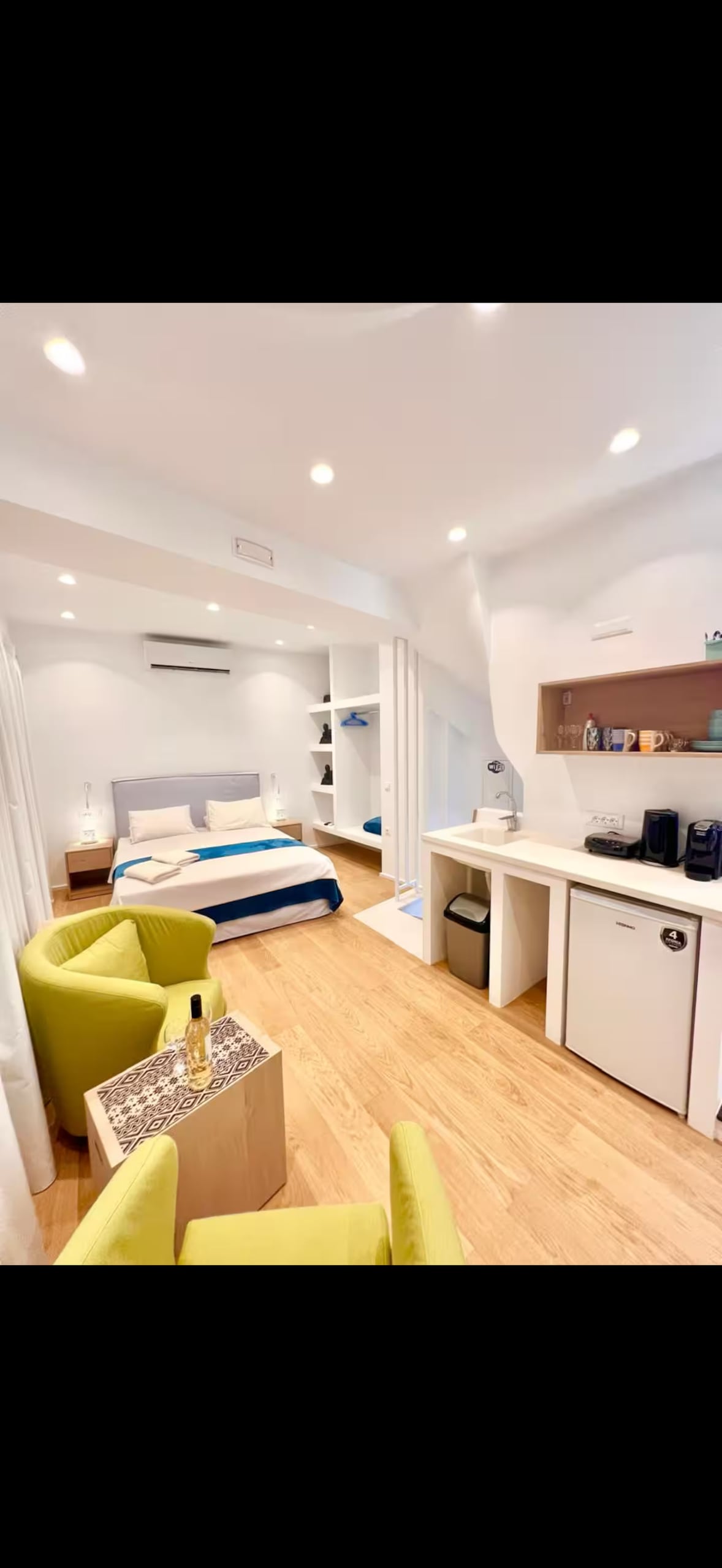 Jaukus Bougainvillea apartamentai yra vos už kelių sekundžių nuo Mikono miesto senojo uosto! Visa erdvė yra tik pėsčiųjų ir siūlo visiškai renovuotą apgyvendinimą 2 žmonėms su visu komfortu, kurio reikia norint patirti Mikonijos gyvenimą ir malonumą. Tai 27 kv. m pirmame aukšte esantis liukso numeris, kuriame dera dizainas ir tradicijos su atviro plano virtuvėle, valgomojo zona, privatus vonios kambarys su Korreso patogumais ir plaukų džiovintuvu. Kambaryje yra oro kondicionierius, plokščiaekranis televizorius ir Bose garso sistema.