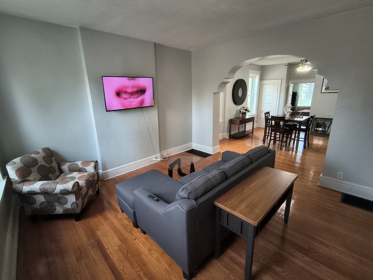 Sveiki atvykę! Su meile atkūrėme savo gražius 1902 m. namus, kad atspindėtume laikotarpį, kuriuo jie buvo pastatyti. Įtraukdami šiuolaikinius patogumus ir funkcionalumą, sukūrėme išties unikalią viešnagę! Interjeras yra erdvus ir patrauklus. Mūsų namuose yra nuostabi lauko gyvenamoji erdvė atsipalaiduoti ir jaustis už kelių mylių nuo miesto , tačiau esame puikioje vietoje, kad per kelias minutes pasiektume visas STL lankytinas vietas. Vieta yra netoli visų pagrindinių greitkelių. Pastaba: mes nesame vieta pramogoms. Tik užsisakę svečiai.