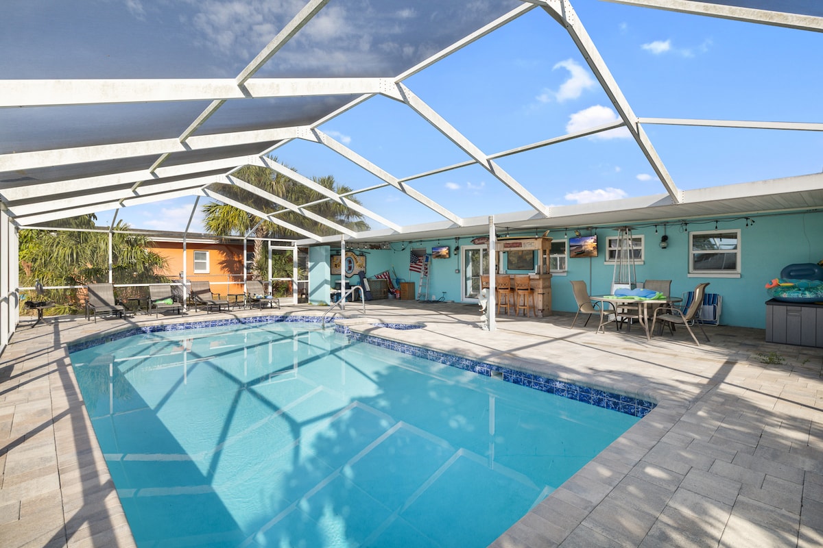 🏠 Welcome to this incredible, stunning & fully updated heated pool & spa home located on a serene waterfront canal of Tampa Bay! Enjoy the dock for fishing & relaxing. Fast WIFI, Samsung Smart TVs, a game room with an air hockey table, ping pong & pool table, and even a Pac-Man machine will make your stay memorable & fun! Most importantly, dive into this amazing heated pool & spa right in front of the canal!