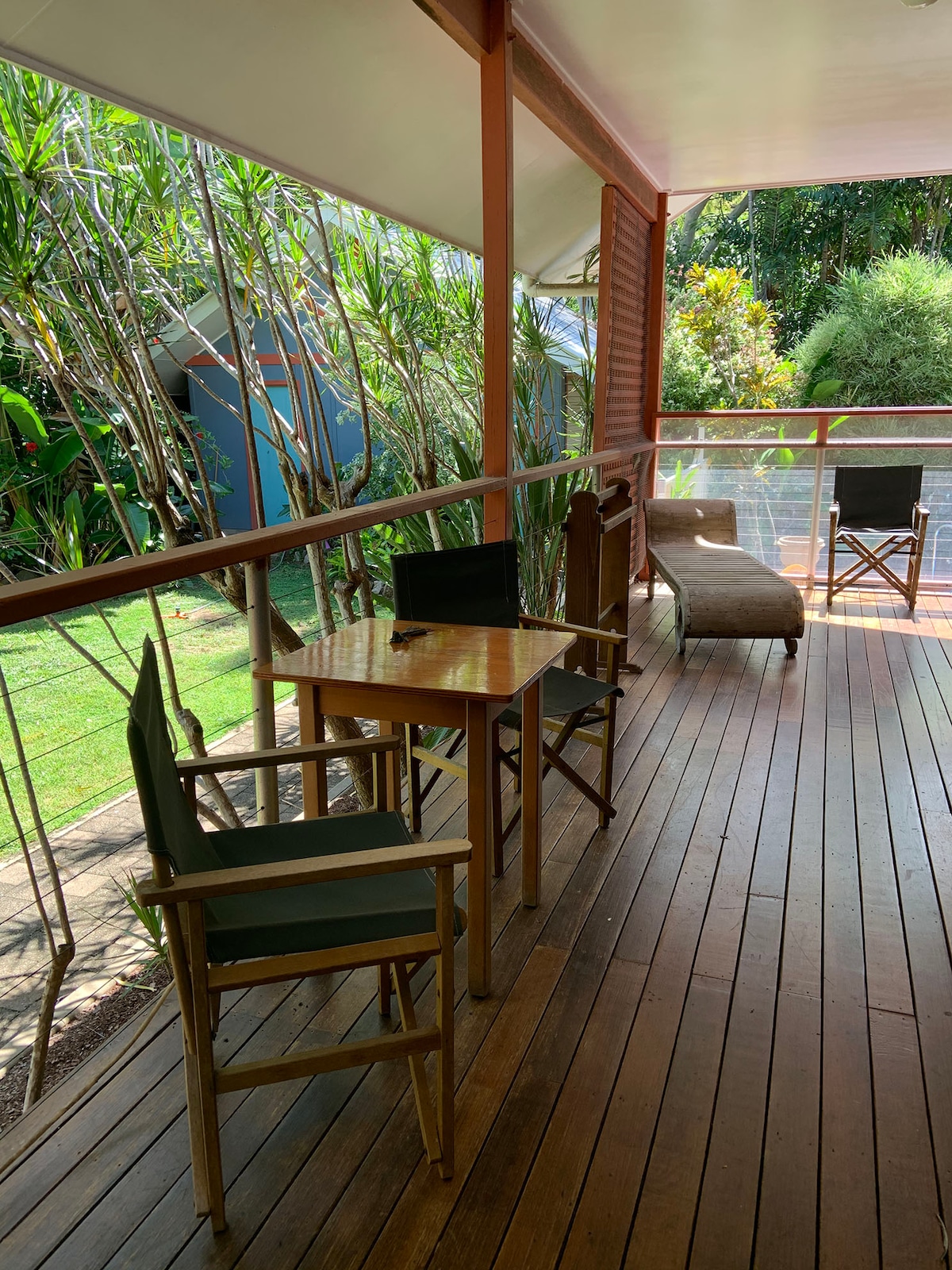 Pirmo aukšto butas, savininkai gyvena viršuje. Būste gyvena draugiškas šuo. 2 miegamieji. 1 dvigulė lova, 1 dvigulė lova. Svečiams skirta terasa, kepsninė ir baseinas. Sodri atogrąžų aplinka, šešėliai, magnio baseinas. Netoli pėsčiųjų takų, autobusų stotelių, 3-5 min. pėsčiomis iki paplūdimio ir parduotuvių. 8 min. pėsčiomis iki keltų terminalo. Taip arti visų patogumų, bet apsupti medžių, paukščių, valabijų, koalų. Kai upelis yra kitoje kelio pusėje, jaučiatės lyg būtumėte atogrąžų miške.