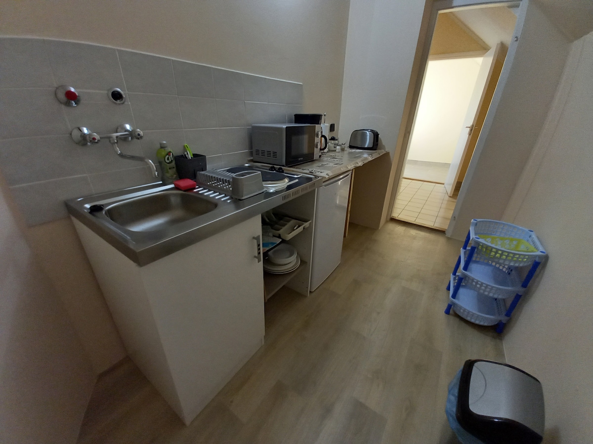 Šiame mini bute viskas yra vienoje oro erdvėje, kuri yra 17 kv. m: virtuvė, dušas (atskirtas akordeono durimis), valgomojo stalas, pakaba, spinta, mikrobangų krosnelė, virdulys, šaldytuvas ir atskiros durys į tualetą. Prancūziška lova ir papildoma lova, jei norite. Siūlome kelioninę lovelę mažiems vaikams. Bute yra televizorius.