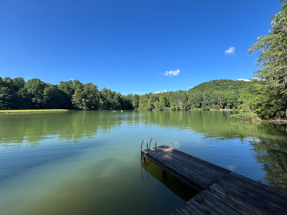 Wolf Lake Retreat yra vaizdingas kalnų ežero namas pačioje Apalačijos širdyje. Iš dviaukščių denių atsiveria vaizdas į ežerą. Galite nusileisti nuo kalvos ir pasimėgauti gėrimu savo prieplaukoje. Šis erdvus namas neseniai buvo atnaujintas. Wolf Lake Retreat su 6 miegamaisiais, 3,5 vonios, 1 pagrindine svetaine, 1 lauko ekranu gyvenamojoje erdvėje, masyviu poilsio kambariu, plačia virtuve, pasivaikščiojimu sandėliuke, vidine valgomojo zona ir lauko valgomojo zona, idealiai tinka iki 3 šeimų.