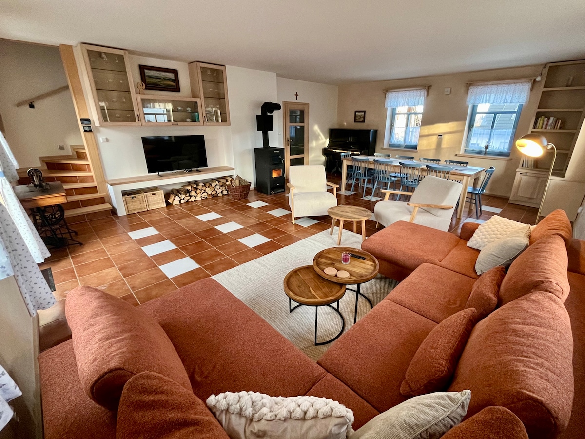 Naše útulná chalupa v Kadově v srdci Žďárských vrchů nabízí ubytování až pro 10 osob. V přízemí se nachází plně vybavená kuchyň, obývací pokoj s jídelním stolem, rozkládacím gaučem, krbovými kamny, chytrou TV a pianinem, koupelna se sprchovým koutem a pračkou se sušičkou. V patře naleznete dvě ložnice (v každé dvoulůžko + jednolůžko), chodba s druhým rozkládacím gaučem a koupelna s vanou i sprchovým koutem. Parkování u chalupy. Za domem je připraveno posezení, ohniště a gril v zahradním domku.
